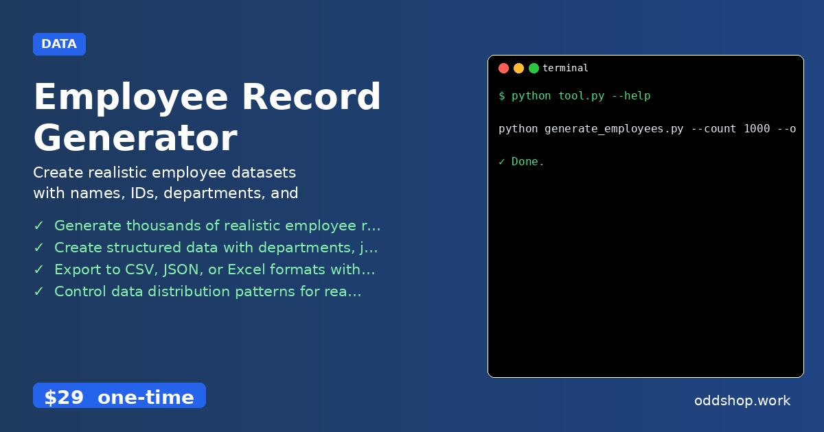 The manual process of creating employee records for testing HR systems, database seeding, or payroll applications is tedious and error-prone. You end up copying and pasting data, guessing realistic salary ranges, or worse — reusing the same names over and over. A proper employee record generator can automate this and make your development workflow more efficient. The Manual Way (And Why It Breaks) Manually creating employee data is a time sink....
